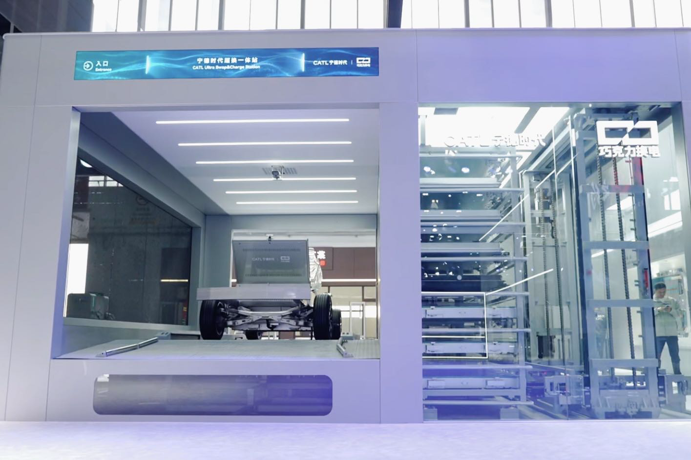 4月24日,2026北京国际汽车展览会正式开幕,巧克力换电站在宁德时代展台正式亮相。展台现场,巧克力换电将站体的外立面透明化,直观呈现了换电过程全流程。